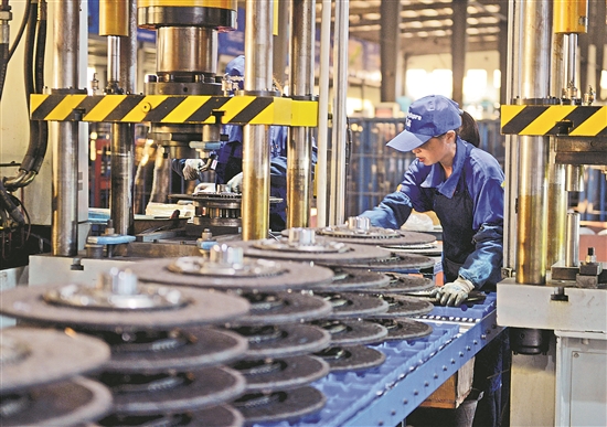 11月12日,在黃山菲英汽車零部件有限公司,工人在離合器生產車間作業。