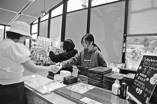 11月12日,游客在安徽省宣城市涇縣汀溪鄉(xiāng)皖南川藏線上的鄉(xiāng)村咖啡店“空空里”購(gòu)買咖啡。