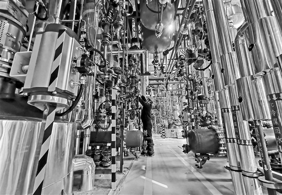 11月11日,在山東日照正濟藥業有限公司,合成操作工進行管道閥門檢修。該公司主要生產研發抗病毒、抗腫瘤、心腦血管以及消化系統類原料藥產品,建設有26條封閉式原料藥生產線、主要面向歐美日韓等國際醫藥市場。