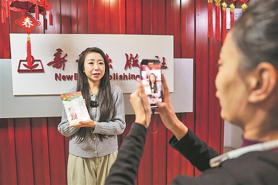 董璐是天津出版傳媒集團新蕾出版社的一名圖書主播,張荃作為直播中控,負責引導主播、在直播過程中與觀眾互動。今年“雙十一”期間,兩人用“捧哏兒與逗哏兒”般的配合,一場近3小時的直播觀看量超萬人次,銷售額也十分可觀。董璐說:“作為一名‘Z世代’(一般指出生于1995年至2009年、深受互聯網等影響的年輕人)圖書類網絡主播,真誠告訴家長如何選擇好書,這才是直播的目的。”新華社記者 孫凡越 攝