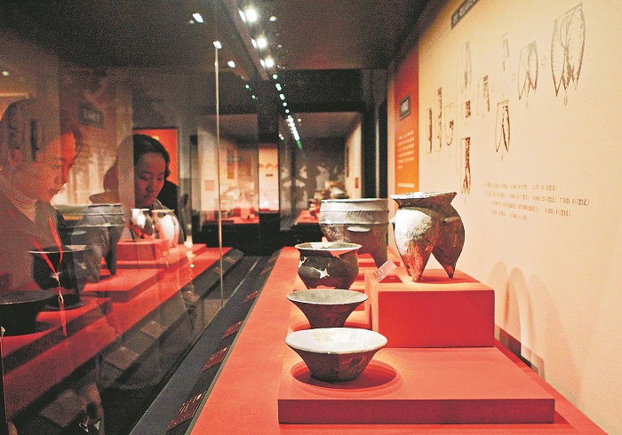 日前,山西省臨汾市陶寺遺址博物館開館儀式舉行。多璜聯璧、彩繪蟠龍紋陶盤、銅蟾蜍片飾、綠松石鑲嵌腕飾、彩繪漆木器、骨質口簧等文物集中亮相,吸引眾多市民和游客前來參觀游覽。陶寺遺址位于山西省臨汾市襄汾縣陶寺村,距今約4300年~3900年。該館以“自然與文明之光”為主題,設有“文明蘊化”“煌煌都邑”“早期國家”3個基本陳列單元,“陶寺考古”“臨時展陳”2個專題展覽以及1個特色沉浸式數字展。共展出陶寺出土的陶器、玉器等文物230件(套)。作為“中華文明探源工程”的重要遺址,陶寺遺址對探索早期國家的起源及中華文明的形成具有十分重要的學術價值。本報通訊員 李現俊 攝