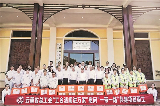 云南工會的“暖邊固防”行動涉及關愛的職工目前多達約41萬人,關愛參與“一帶一路”建設的職工,是“暖邊固防”的重要內容。圖為省總工會深入老撾萬象慰問“一帶一路”共建項目職工。