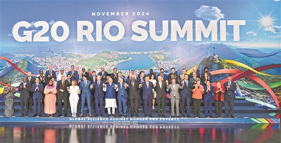 當(dāng)?shù)貢r(shí)間11月19日中午,國(guó)家主席習(xí)近平在里約熱內(nèi)盧出席二十國(guó)集團(tuán)領(lǐng)導(dǎo)人第十九次峰會(huì)閉幕會(huì)議。這是閉幕會(huì)議后,習(xí)近平同其他與會(huì)領(lǐng)導(dǎo)人合影。新華社記者 李濤 攝