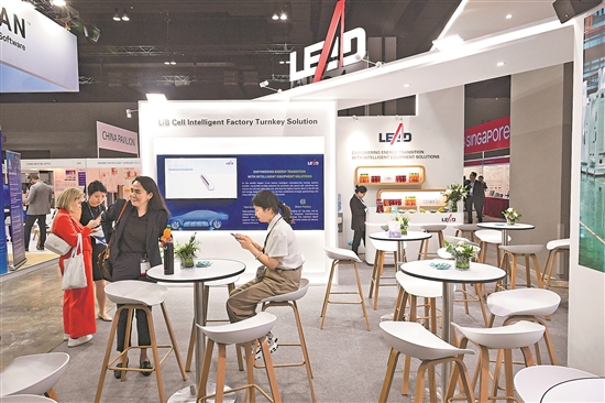 圖為11月19日在馬來西亞吉隆坡2024馬來西亞智慧國家展上拍攝的無錫先導(dǎo)智能裝備股份有限公司的展位。新華社記者 程一恒 攝
