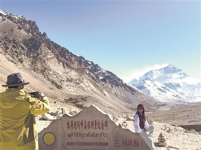 11月20日,游客在珠峰景區拍照留影。