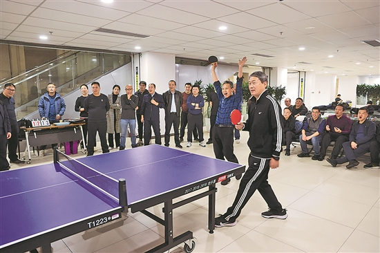 11月12日晚,清華大學雙清綜合樓,培訓營中的乒乓球愛好者開展乒乓球比賽,以賽會友。