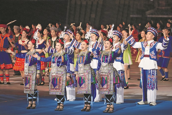 在萬(wàn)眾矚目的場(chǎng)館里,在清風(fēng)拂面的碧海邊,在熱烈閃耀的陽(yáng)光下,“鑄牢中華民族共同體意識(shí)”得到了具象化呈現(xiàn)。