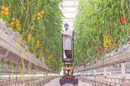 12月2日,在浙江省湖州市德清縣阜溪街道龍勝村一家蔬菜工廠,工人在智能溫室采摘彩色小番茄。該蔬菜工廠以種植番茄為主,應(yīng)用無土立體栽培、冬季加溫、水肥自動化微噴等現(xiàn)代農(nóng)業(yè)先進(jìn)技術(shù),鮮果采收期可延長到8個月左右,產(chǎn)量與效益雙提升,促進(jìn)群眾增收致富,助力鄉(xiāng)村振興。
