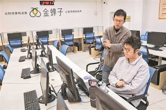 12月3日,金蟬子公益團(tuán)隊(duì)成員在調(diào)試唇語輔助訓(xùn)練系統(tǒng)。