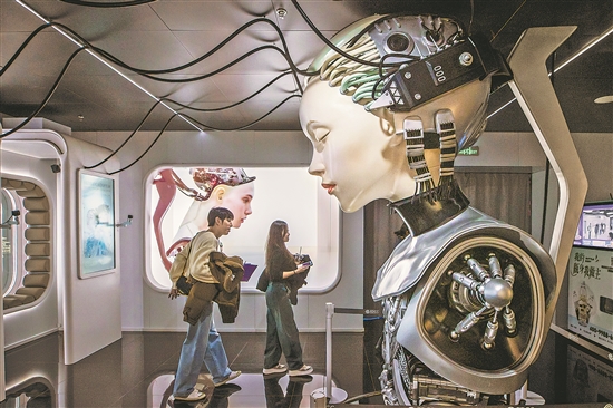 12月4日,北京,EDCC藝云數字藝術中心(王府井),觀眾在觀看《靈境·未來靈感世界》展覽。據了解,該展覽通過AIGC、8K超高清、交互傳感、VR、裸眼3D等數字技術,融合中國傳統文化和西方優秀文化IP,打造沉浸式、參與式的數字藝術館,為公眾提供豐富的數字文化大餐。本報記者 蔚可任 攝