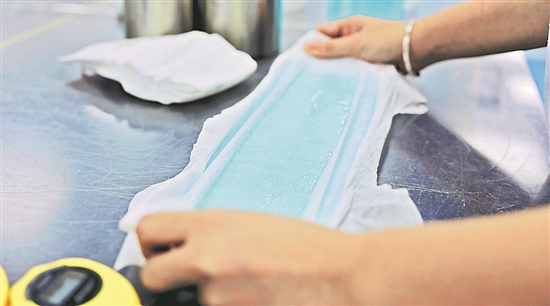 布班迪研發(fā)團隊對新品紙尿褲進行性能測試。