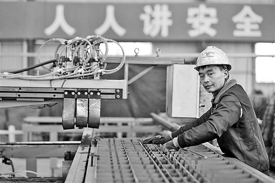 12月2日,工人在渝昆高鐵云南段昭通制梁場內作業。