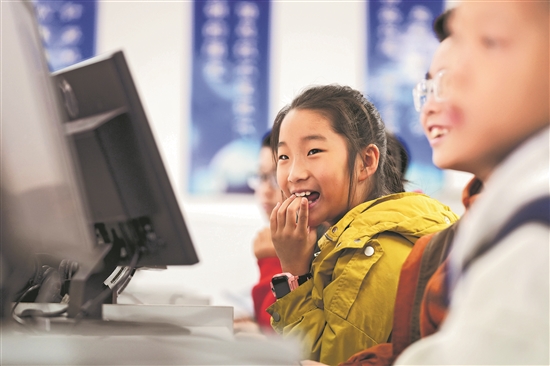 12月1日,重慶市北碚區,參加青少年智能機器人編程大賽的小選手。該比賽采取線上線下同步進行的方式,共吸引了1400余名中小學生參賽。