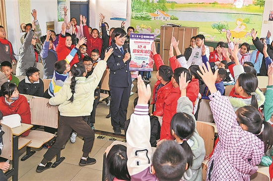 12月4日,安徽省馬鞍山市,和縣公安局民警走進歷陽鎮中心小學開展憲法宣傳活動,提升廣大青少年法治觀念。本報通訊員 秦祖泉