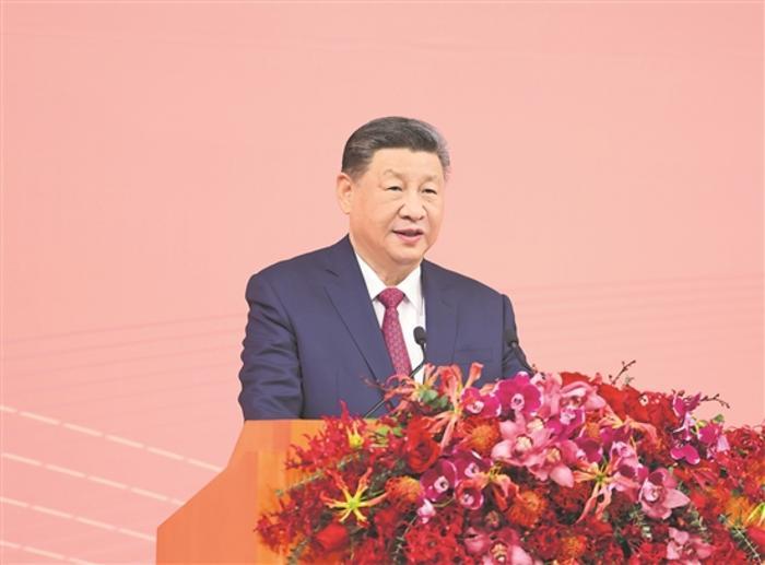 習近平表示,澳門擁有“一國兩制”這一獨特優勢,已經打下堅實發展基礎,乘著強國建設、民族復興的浩蕩東風,完全有條件有能力飛得更高、走得更遠、實現更好發展。