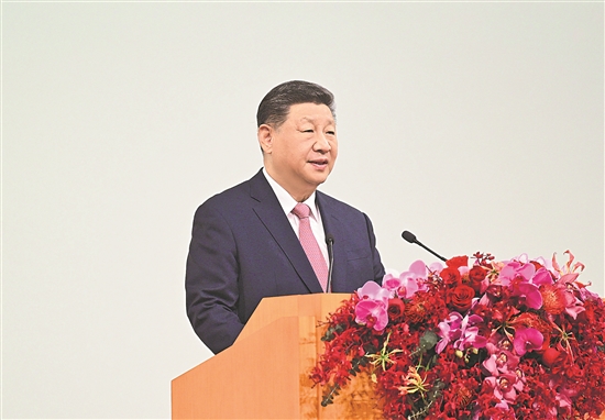 新華社澳門12月20日電 (記者朱基釵 趙博 張研)慶祝澳門回歸祖國25周年大會暨澳門特別行政區第六屆政府就職典禮20日上午在澳門東亞運動會體育館隆重舉行。中共中央總書記、國家主席、中央軍委主席習近平出席并發表重要講話。他指出,澳門回歸祖國25年來,具有澳門特色的“一國兩制”實踐取得巨大成功,澳門發生翻天覆地的變化,國際影響力大幅提升。他希望,新一屆澳門特別行政區政府團結帶領社會各界,搶抓機遇、銳意改革、擔當作為,更好發揮“一國兩制”制度優勢,不斷開創“一國兩制”事業高質量發展新局面。