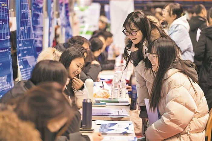 12月23日,在黑龍江大學2025屆畢業生冬季供需見面洽談會現場,求職者與招聘方代表溝通。據悉,本次招聘會參會企業187家,提供就業崗位8000余個。