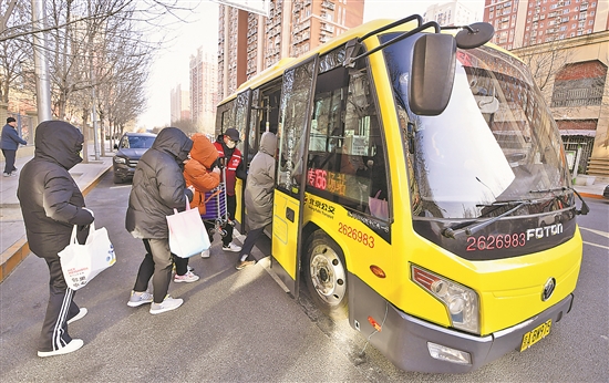 12月25日,北京市朝陽區(qū)高碑店鄉(xiāng)花園閘社區(qū)的居民乘坐便民小型公交車出行。花園閘社區(qū)北花園小區(qū)附近過去沒有公交、地鐵等交通站點,居民出行極為不便。近日,高碑店鄉(xiāng)與交管部門、公交部門溝通協(xié)商后,開通了被居民稱為“溫暖小公交”的公交出行線路,配備了連通附近公交站點和地鐵站點的便民小型公交車,解決了居民出行“最后一公里”難題。