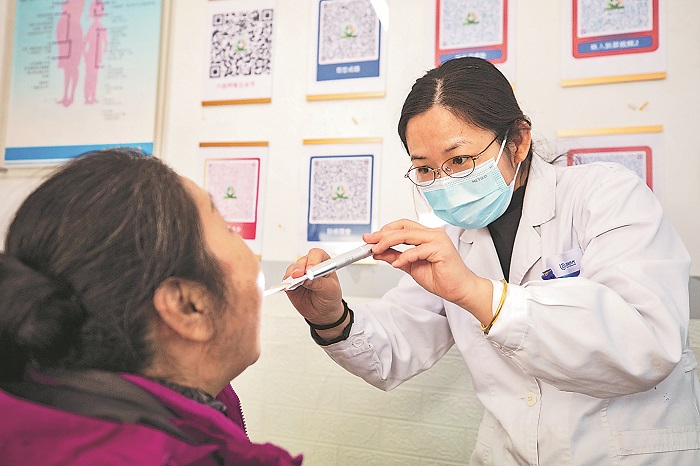 近日,北京市第六醫(yī)院呼吸科門診,醫(yī)生正在為患者檢查。隨著氣溫逐漸下降,目前全國急性呼吸道傳染病呈現(xiàn)持續(xù)上升趨勢。為此,該院加派醫(yī)護(hù)人員,并通過“互聯(lián)網(wǎng)+醫(yī)聯(lián)體”的模式為患者提供服務(wù),以應(yīng)對就診高峰。本報記者 王偉偉 攝