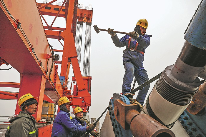 1月30日,江蘇常泰長江大橋建設現場,工人進行斜拉索錨頭安裝。該工程于2019年開工建設,于2024年6月實現全線貫通,預計2025年上半年具備通車條件。本報記者 劉金夢 攝