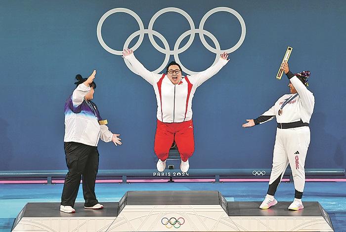 當地時間8月11日,在巴黎奧運會舉重女子81公斤以上級的比賽中,中國選手李雯雯奪得金牌。至此,中國體育代表團在本屆奧運會上共獲得40枚金牌,創境外參賽歷史最佳戰績。本報記者 楊登峰 攝