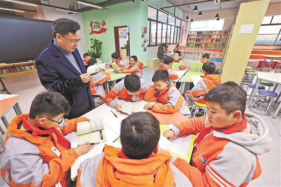 圖為近日在嘉興市南湖區余新鎮中心小學圖書館的“老少閱讀攀登合作社圖書漂流站”,退休教師陶坤華與孩子們一起閱讀。