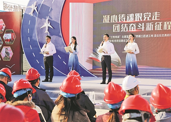 廈門市總工會“工悅領(lǐng)讀”主題宣講活動走進(jìn)翔安機(jī)場建設(shè)工地。
