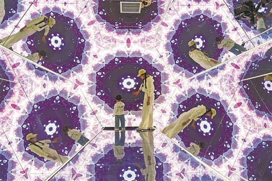 近日,在安徽省壽縣二十四節(jié)氣館,游客通過聲光電現(xiàn)代科技技術(shù)感受節(jié)氣文化。