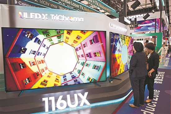4月16日,在第137屆廣交會的智慧生活專區,觀眾觀看大尺寸電視產品。