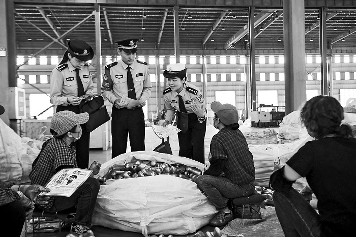 4月15日,安徽省馬鞍山市含山縣公安局聯(lián)合合肥鐵路公安處巢湖東站派出所走進(jìn)轄區(qū)企業(yè),開展普法宣傳活動。