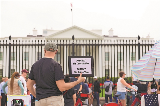 當日,人們在美國首都華盛頓白宮門前參加抗議活動。新華社記者 胡友松 攝