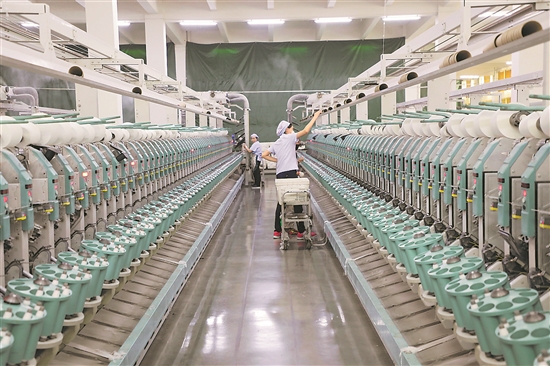 日前,在江西德鑫紡織有限公司的生產車間內,工人們正在加緊生產一批銷往海外的訂單。本報通訊員 徐浩儒 攝