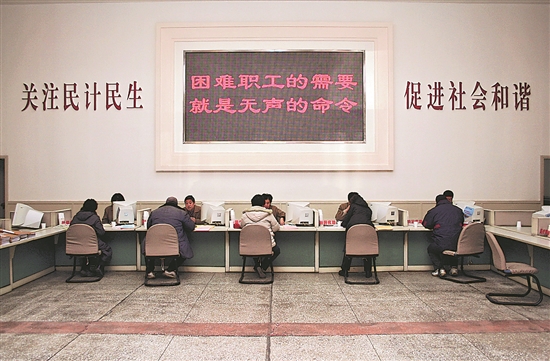 2002年成立的天津市困難職工幫扶中心(今天津市職工服務中心)大廳。