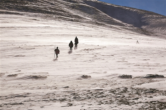 四川省總工會“繪西部樞紐 譜蜀道華章”勞動競賽中,鐵路勘查人員雪中踏勘。