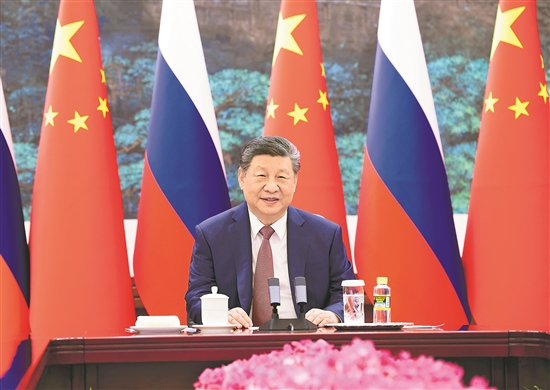 習近平表示,開年以來,國際形勢愈發動蕩。作為負責任大國和聯合國安理會常任理事國,中俄兩國有義務推動國際社會堅守公平正義,堅定捍衛二戰勝利成果,堅決維護以聯合國為核心的國際體系和國際法基本準則,攜手維護全球戰略穩定。