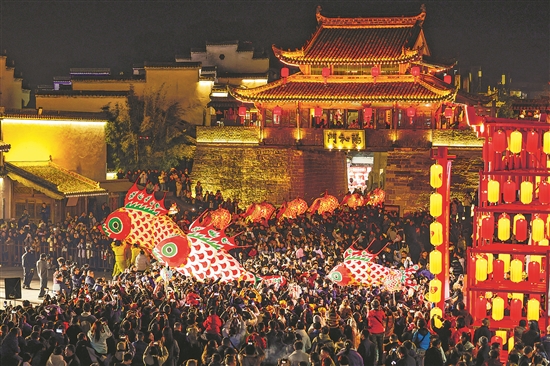 非遺魚燈巡游點亮徽州古城