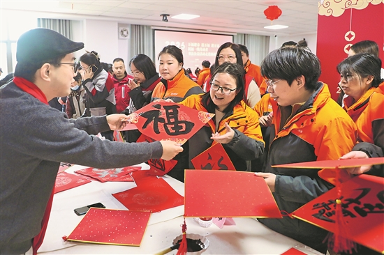 由江蘇省總工會與江蘇省文聯聯合主辦的2026年“萬福迎春 送萬福 進萬家 祝福一線勞動者”書法公益活動啟動以來,江蘇13個城市積極響應,為一線勞動者傳遞組織溫暖、送上新春祝福。 本報記者 劉金夢 攝