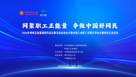 根據中華全國總工會、中央網信辦聯合發布的《關于開展2024年“網聚職工正能量 爭做中國好網民”主題活動的通知》(總工字〔2024〕16號)要求,2024年由全國職工書屋和寧夏回族自治區總工會共同承辦“閱讀經典好書 爭做中國好網民”全國網絡正能量誦讀作品征集活動暨全國工會職工書屋示范性主題閱讀交流專場活動。中工網首頁、微博、抖音號同步直播。
