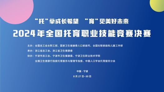 由全國總工會女職工部、國家衛生健康委人口家庭司、全國婦聯家庭和兒童工作部主辦,浙江省總工會、浙江省衛生健康委承辦的全國托育職業技能競賽決賽將于2024年8月27日至30日在浙江寧波開賽。競賽分為保育師(職工組)、保育師(學生組)和育嬰員(職工組)3個賽道,面向廣大保育、育嬰工作者和職業院校相關專業學生廣泛開展,聚焦托育服務人才培養,以賽促學,以賽促建。作為首次全國性托育職業技能競賽,本次競賽參賽選手多、關注度高、社會影響大,全國31個省級代表隊高度重視此次競賽,經省級初賽共選拔近300名選手參加決賽。8月30日9:00閉幕式,中工網首頁、微博、抖音號、微信視頻號、頭條號同步直播。
