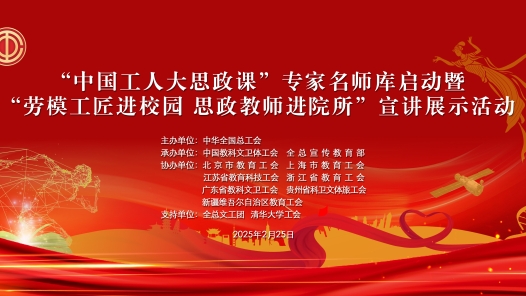 ?為貫徹習近平總書記關于大力弘揚勞模精神、勞動精神、工匠精神和加強新時代學校思政課建設的重要指示,落實全總“559”工作部署,強化產業職工思想政治引領,創新打造“中國工人大思政課”,在以中國式現代化全面推進強國建設、民族復興偉業中發揮工會組織作用,2月25日15:00,“中國工人大思政課”專家名師庫啟動暨“勞模工匠進校園 思政教師進院所”宣講展示活動在清華大學舉辦。中工網首頁、微博、視頻號同步直播。