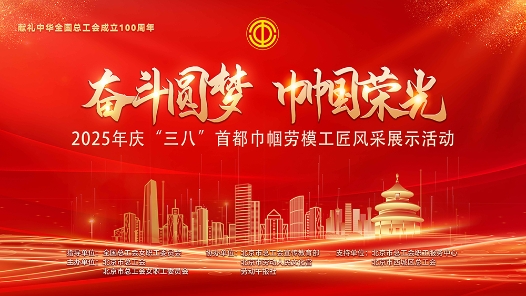 為慶祝中華全國總工會成立100周年,貫徹落實創新打造“北京工人大思政課”工作要求,在2025年“三八”國際婦女節來臨之際,由全國總工會女職工委員會指導,北京市總工會、北京市總工會女職工委員會主辦的以“奮斗圓夢 巾幗榮光”為主題的2025年慶“三八”首都巾幗勞模工匠風采展示活動在天橋藝術中心舉辦。在這個光榮而充滿夢想的舞臺上,一批具有先進性、典型性的首都巾幗勞模工匠代表登臺講述她們的奮斗故事,展現她們在新時代的廣闊舞臺上傳承弘揚勞模精神、勞動精神、工匠精神的巾幗風采。展示活動于3月6日14:30在中工網首頁、微博、視頻號同步播出。