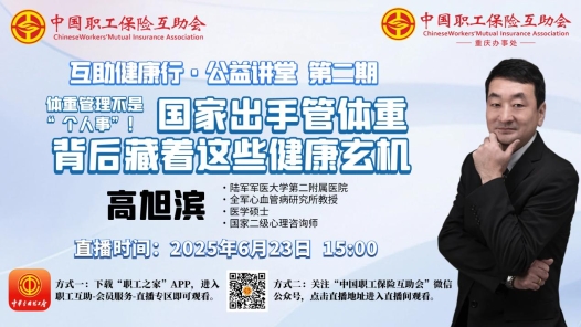 ?6月23日(周一)下午15:00至16:30,由中國職工保險互助會主辦、中互會重慶辦事處承辦的2025年第二期“互助健康行?公益講堂”——《體重管理不是“個人事”!國家出手管體重,背后藏著健康玄機》,開啟線上直播。本期“互助健康行·公益講堂”線上直播活動邀請陸軍軍醫大學第二附屬醫院(新橋醫院)全軍心血管病研究所教授、醫學碩士、執業醫師、國家二級心理咨詢師、重慶醫學會醫師學會神經內科專委會睡眠學組委員、重慶市心理健康學會理事、重慶市心理健康學會綜合醫院會診專委會副主委、重慶醫師協會基層醫務工作者分會副會長兼心理健康學組組長、身心健康管理專家高旭濱教授,和職工會員們聊一聊體重管理對家庭、社會的重要影響,以及肥胖者的心理狀態和體重超重的重要原因。