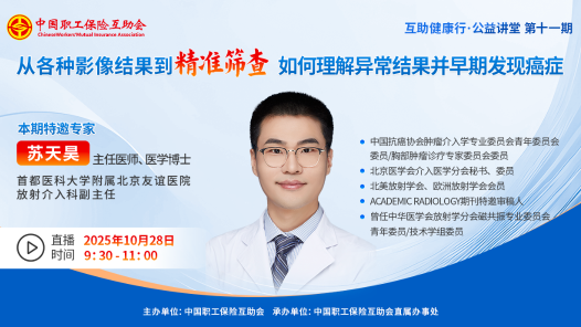 直屬辦事處承辦,特別邀請影像介入領域權威專家,帶您深入探討“如何理解異常結果并早期發現癌癥”,從專業角度解讀指南、分析利弊,為您提供基于影像學檢查的個體化防癌篩查,助您做出明智的健康選擇!10月28日9:30,中工網首頁、微博、視頻號同步播出。