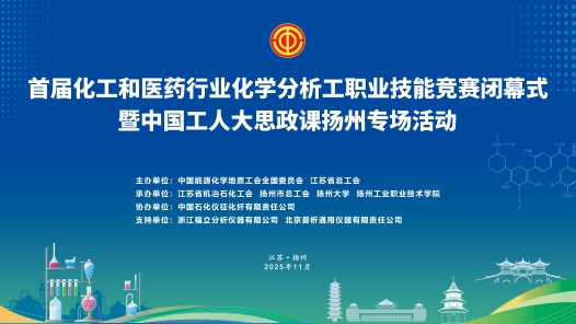 首屆化工和醫藥行業化學分析工職業技能競賽由中國能源化學地質工會全國委員會和江蘇省總工會共同主辦,江蘇省機冶石化工會、揚州市總工會、揚州大學、揚州工業職業技術學院承辦。競賽覆蓋范圍廣,職工參與度高。本次賽事7月份啟動,共有36個賽區開展選拔賽,累計培訓職工達61450人次,2827名優秀選手同臺競技。競賽包括理論基礎知識、化學分析、色譜分析、分光光度分析和實驗室安全隱患排查等競賽項目。決賽于2025年11月27日在江蘇省揚州市舉辦,匯聚全國25個省(區、市)的36支代表隊,118名分析尖兵巔峰對決。中工網首頁、微博、視頻號同步播出。
