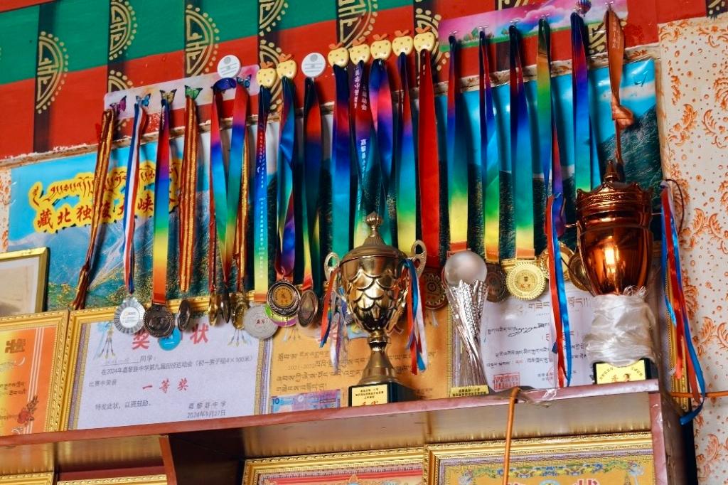 如今,頓珠嘉措家里的柜子上擺滿了他和哥哥獲得的獎杯和獎牌,哥哥被選入那曲市青少年滿天星訓練營,有更多的機會到外面開拓眼界、學習提升,也成為了頓珠嘉措的榜樣。正在上初二的他,也有了自己的目標,希望能考上區外的大學,當一名體育老師,服務家鄉。